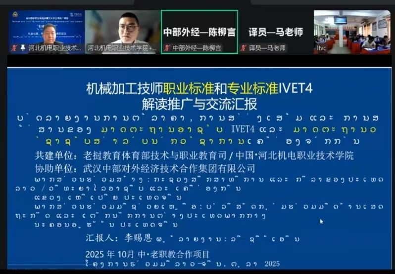 为深入推进国际化交流与合作,落实学院“引进来、走出去”的发展要求,10月24日,机械工程系副主任李海涛与教师李赐恩参加了面向老挝琅勃拉邦职业技术学院师生的“机械加工技师”职业标准与专业教学标准推广培训会。会议由武汉中部对外经济技术合作集团有限公司主持。