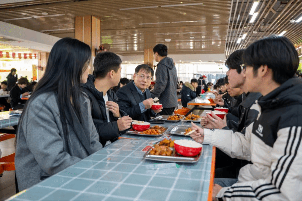 随后来到美其食餐厅一层共进午餐。用餐期间,王彦林与同学们围绕餐厅环境、饭菜质量、生活花销等话题畅聊,明确学院将始终坚持以学生为中心,及时吸纳意见优化服务,勉励学子坚定理想、明确目标,深耕专业知识,不负韶华。