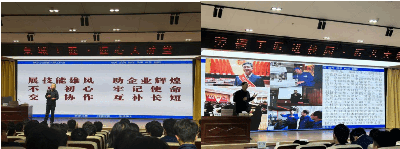 揭牌仪式后,张东元和郭晋龙结合自身成长经历与从业经历开展分享交流。张东元以“攻关、交流、协作、传承、传艺、创新”为主题,结合习近平总书记在清华大学考察时的重要讲话,围绕“什么是真正的职业教育”展开分享。郭晋龙以个人成长奋斗历程为鲜活案例,勉励高职学子珍惜当下学习平台,不惧质疑、脚踏实地,以匠心守初心,用技能报家国,坚定成才信念。