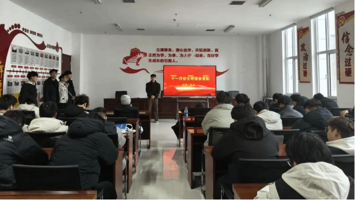 为持续推进宿舍文明建设,打造整洁温馨的学习与住宿生活氛围,培养同学们的自律意识与集体荣誉感,我系于12月23日在科技创新中心218会议室,开展十一月份文明宿舍表彰大会。